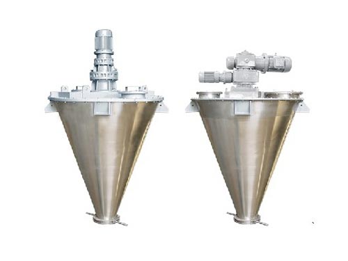標(biāo)準(zhǔn)型錐形螺旋混合機(jī)有兩根攪拌螺旋,實(shí)際應(yīng)用中根據(jù)設(shè)備規(guī)格大小可以采用單(一根長(zhǎng)螺旋)、雙(長(zhǎng)短各一兩根不對(duì)稱螺旋)、三(兩短一長(zhǎng)對(duì)稱布置)根螺旋。